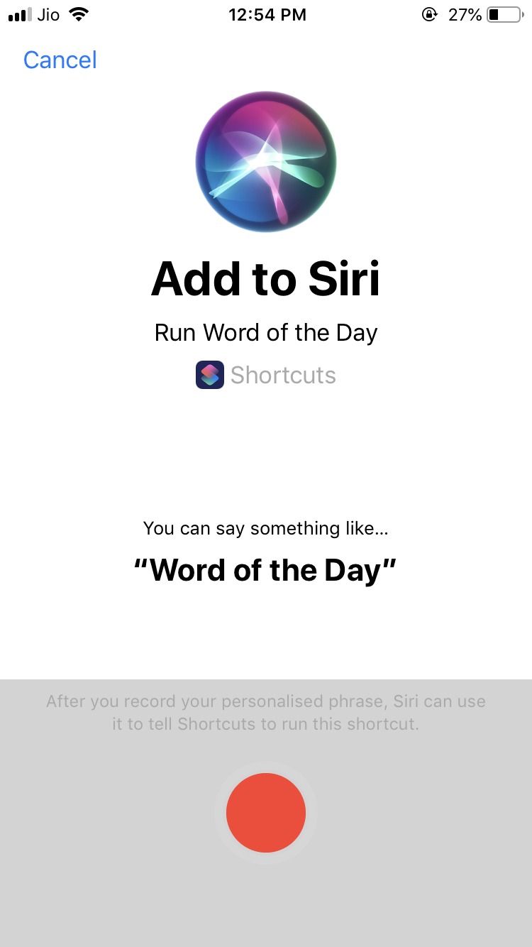 - Нажмите «Добавить в Siri» и запишите любую фразу, которую вы хотели бы использовать для активации ярлыка.