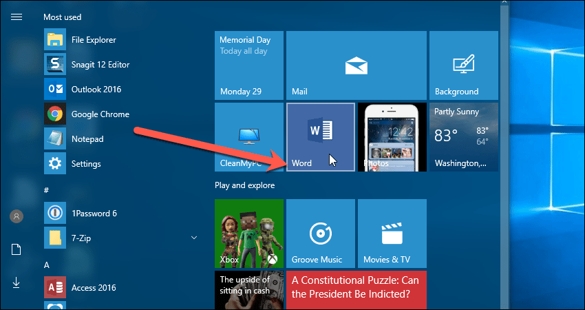 Вы также можете переименовать плитки. Например, мы хотим удалить «2016» из плитки «Word 2016», потому что мы знаем, какую версию мы используем.